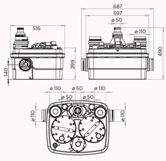Sanicubic 2 NM - насосная станция принудительной канализации для санузла, кухни, прачечной -подключение нескольких сантехнических объектов одновременно