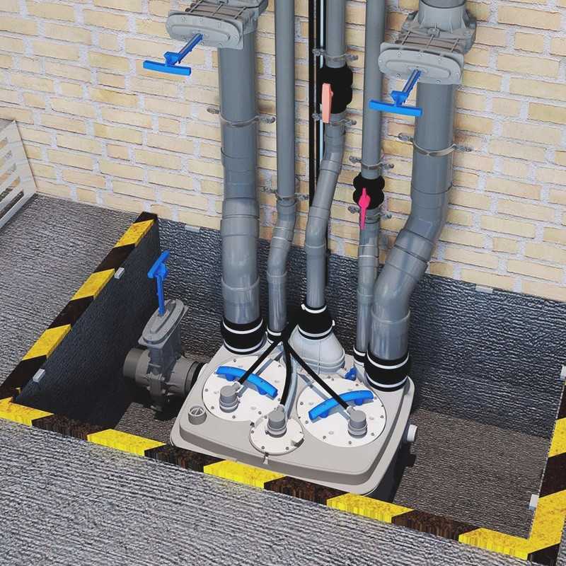 КНС устанавливаются ниже уровня канализационной системы в подвалах крупных многоквартирных домов, общественных и коммерческих зданий, жилых домов, школ, офисные зданий, гостиниц, ресторанов, больниц и промышленных предприятий.