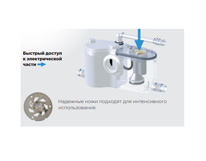 SFA SANIBEST Pro в течение короткого времени может выдерживать температуру стоков в +70 градусов по Цельсию. За счет этого к насосному оборудованию САНИБЕСТ может подключаться стиральная машина и душевой поддон/кабина. В корпусе предусмотрен специализированный встроенный теплообменник, обеспечивающий своевременное охлаждение масла в электрическом моторе.