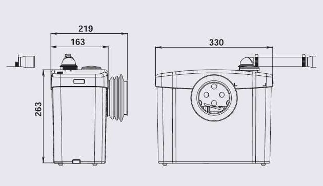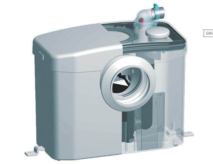 SFA Sanibroyeur— компактный насос-измельчитель для унитаза с горизонтальным выпуском. Позволяет установить санузел в любом удобном месте без гравитационной канализации.