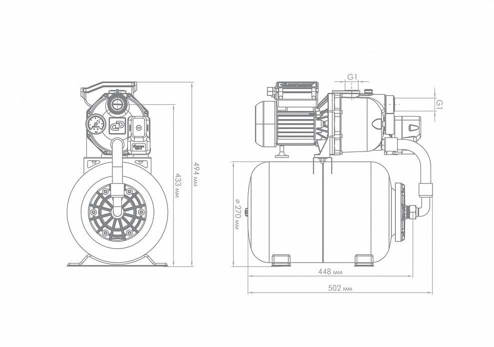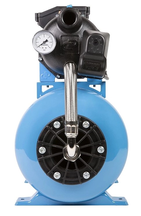 Наличие гидроаккумулятора позволяет защитить насос от частых пусков и позволяет предотвратить гидроудар, тем самым увеличивая его срок службы. Он же позволяет поддерживать давление в системе, что обеспечивает бесперебойное водоснабжение потребителей в тот момент, когда насос отключается.Технические характеристики: