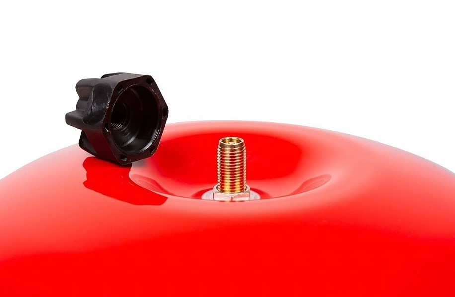 - Бак снабжен воздушным клапаном (ниппелем) с пластиковым колпачком для контроля и измерения давления.