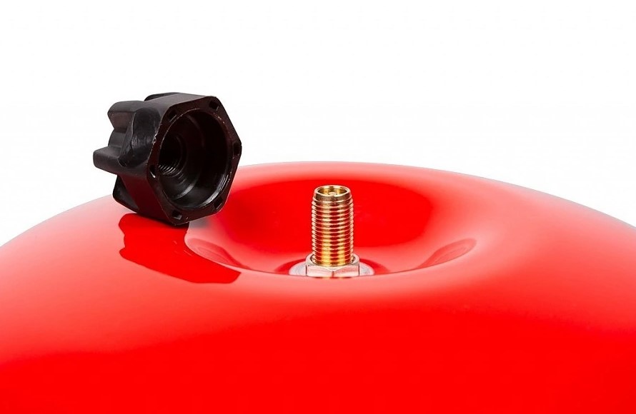 - Бак снабжен воздушным клапаном (ниппелем) с пластиковым колпачком для контроля и измерения давления.