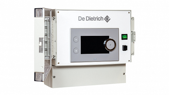 Съемная панель управления, которую можно установить под котлом или повесить на стене, имеет ЖК-дисплей, клавиши для регулировки температуры для отопления и для ГВС, а также клавиши для сброса и подтверждения.