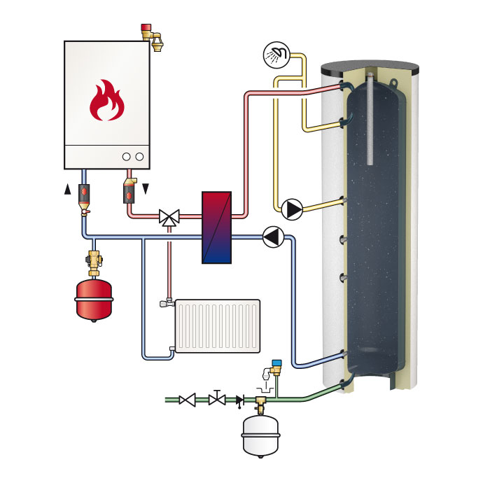 Сделан из стали и предназначен для хранения воды в системах нагрева и охлаждения воды. Также может применяться в системах хранения воды с использованием группы баков.