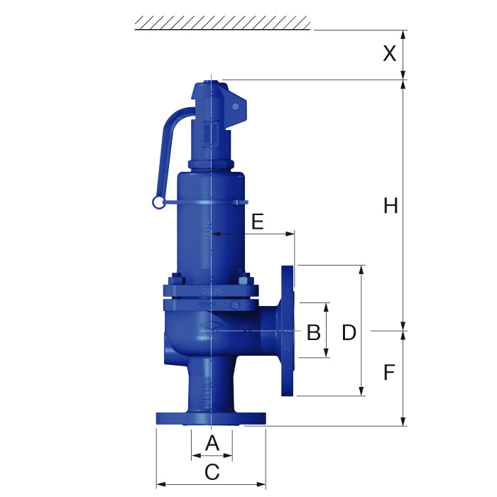 | Полноходовой предохранительный клапан 125 | 125 | 200 | 250 | 340 | 200 | 250 | 845 | 500 | 125 |