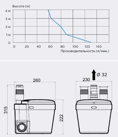 Производитель – SFA Group, Франция. Насос SANIBROYEUR справляется с фекальными стоками, туалетной бумагой, грязной водой. Измельчительная система оборудования состоит из прочных режущих ножей.