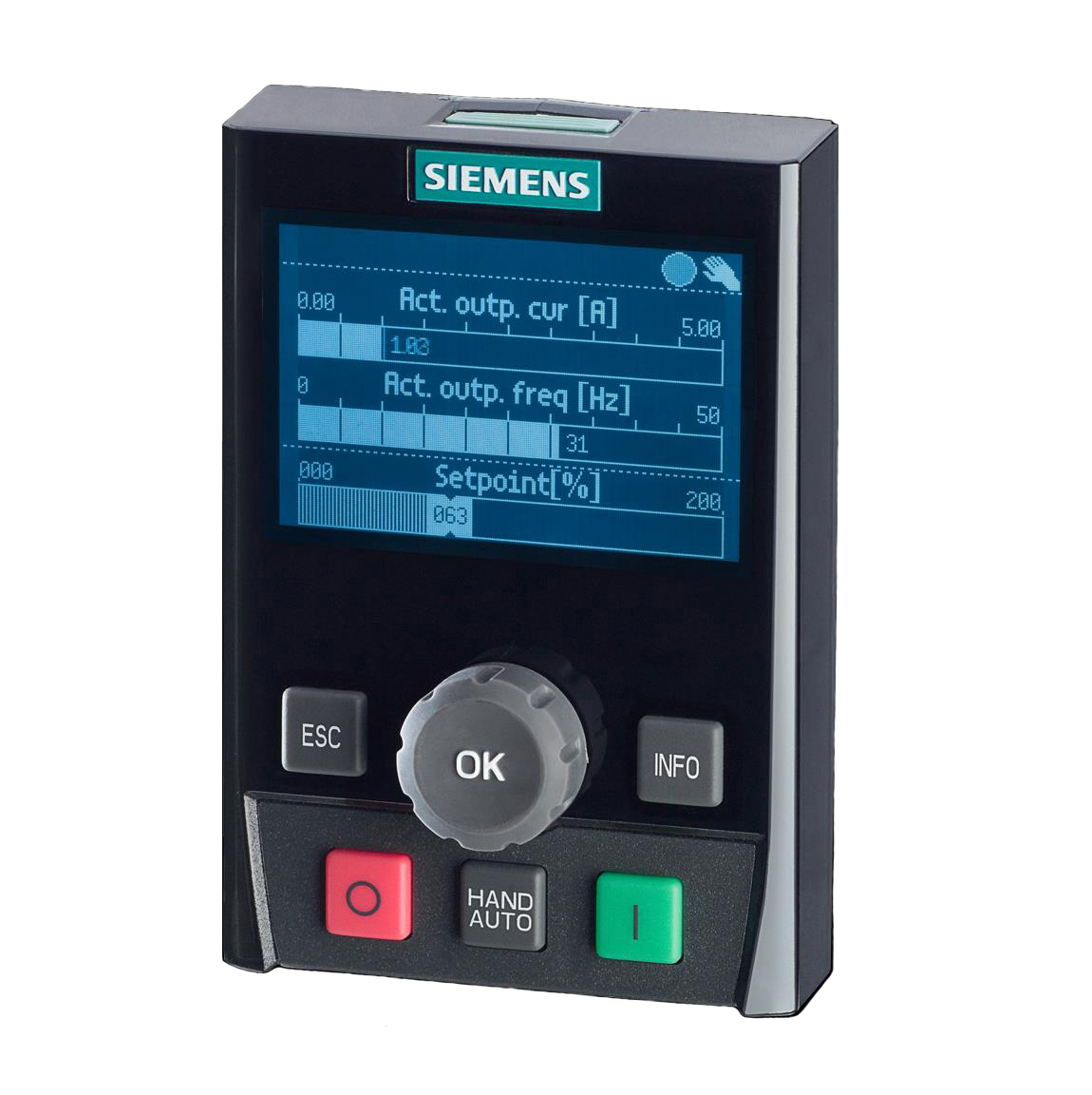 Панель оператора с расширенными возможностями: графический дисплей, встроенные текстовые мастера настроек для простых приложений, отображение трендов (давление, температура и т. д.), копирование настроек между ЧП |