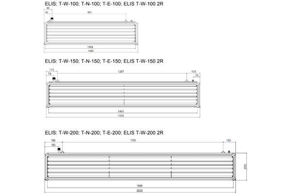 | Параметр | T-N-100 | T-W-100 | T-E-100 | T-N-150 | T-W-150 | T-E-150 | T-N-200 | T-W-200 | T-E-200 |